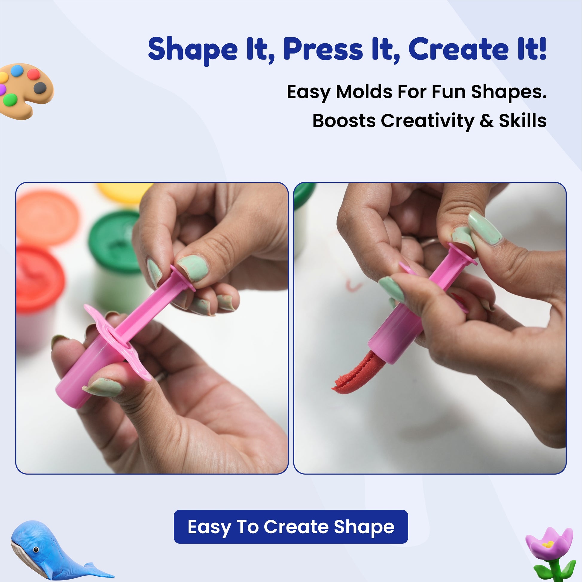 The soft, easy-to-mold dough is perfect for shaping, rolling, and crafting detailed designs while building fine motor skills and creative confidence. Compact, safe, and ready to use right out of the box, it’s the perfect choice for young artists and curious minds.