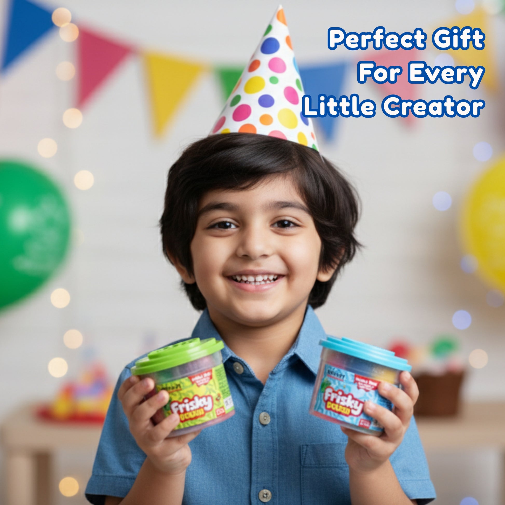 Perfect for home, school, and craft studios, Frisky Dough helps children enhance fine motor skills, imagination, and hand-eye coordination while having fun!
