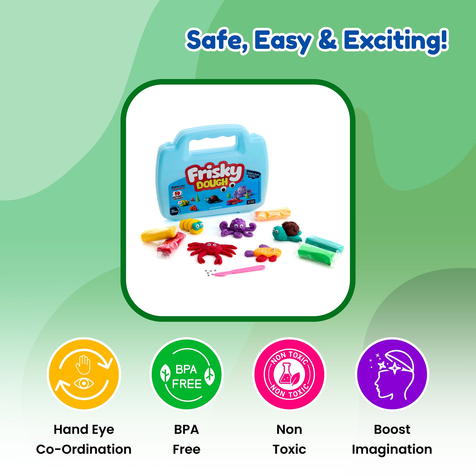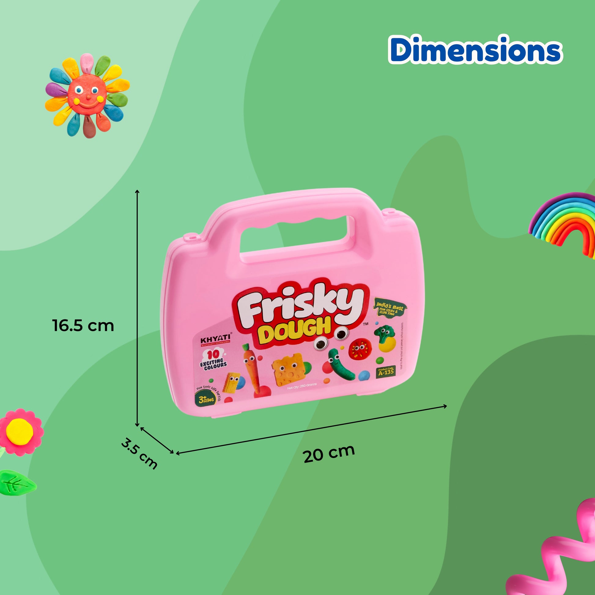 Open a world of imagination with the Frisky Dough Suitcase Set, packed with everything kids need to create, shape, and explore! Inside, you’ll find 10 vibrant modeling dough colors (25g each) for a total of 250g of creative fun, all made from BIS Certified, non-toxic material that’s perfectly safe for little hands.