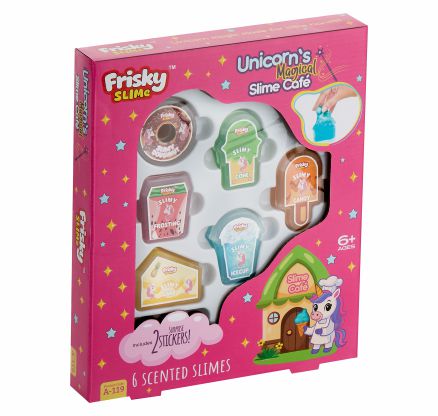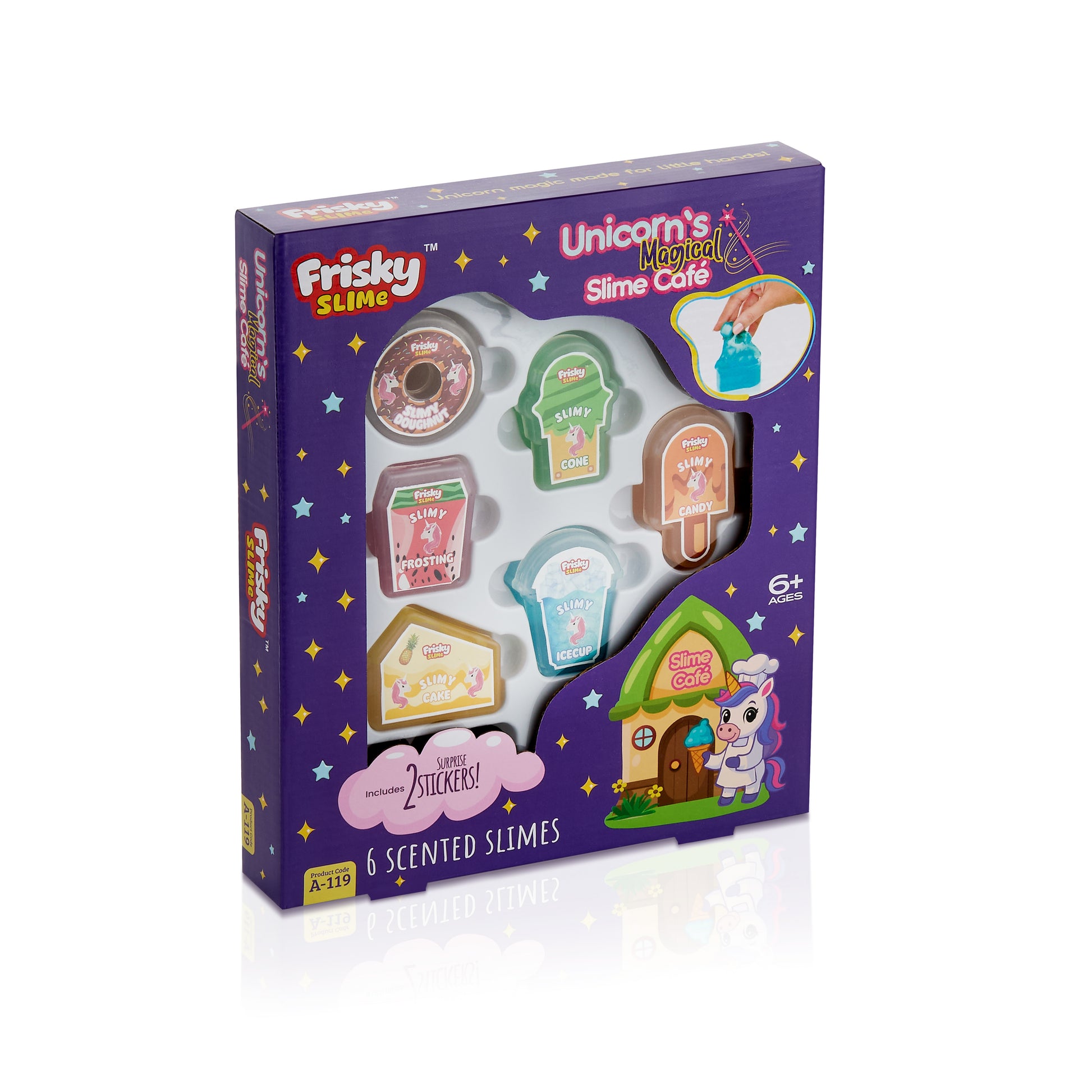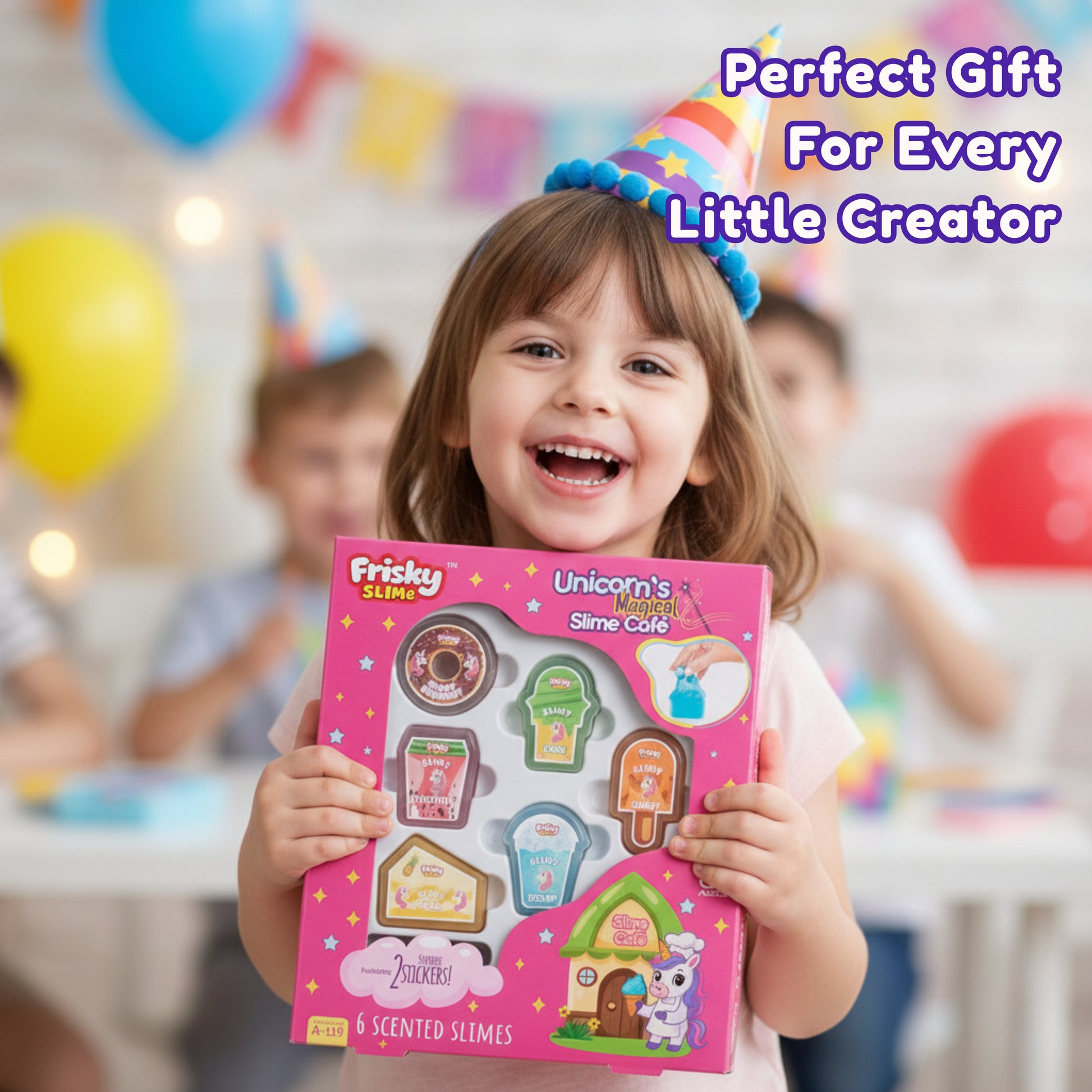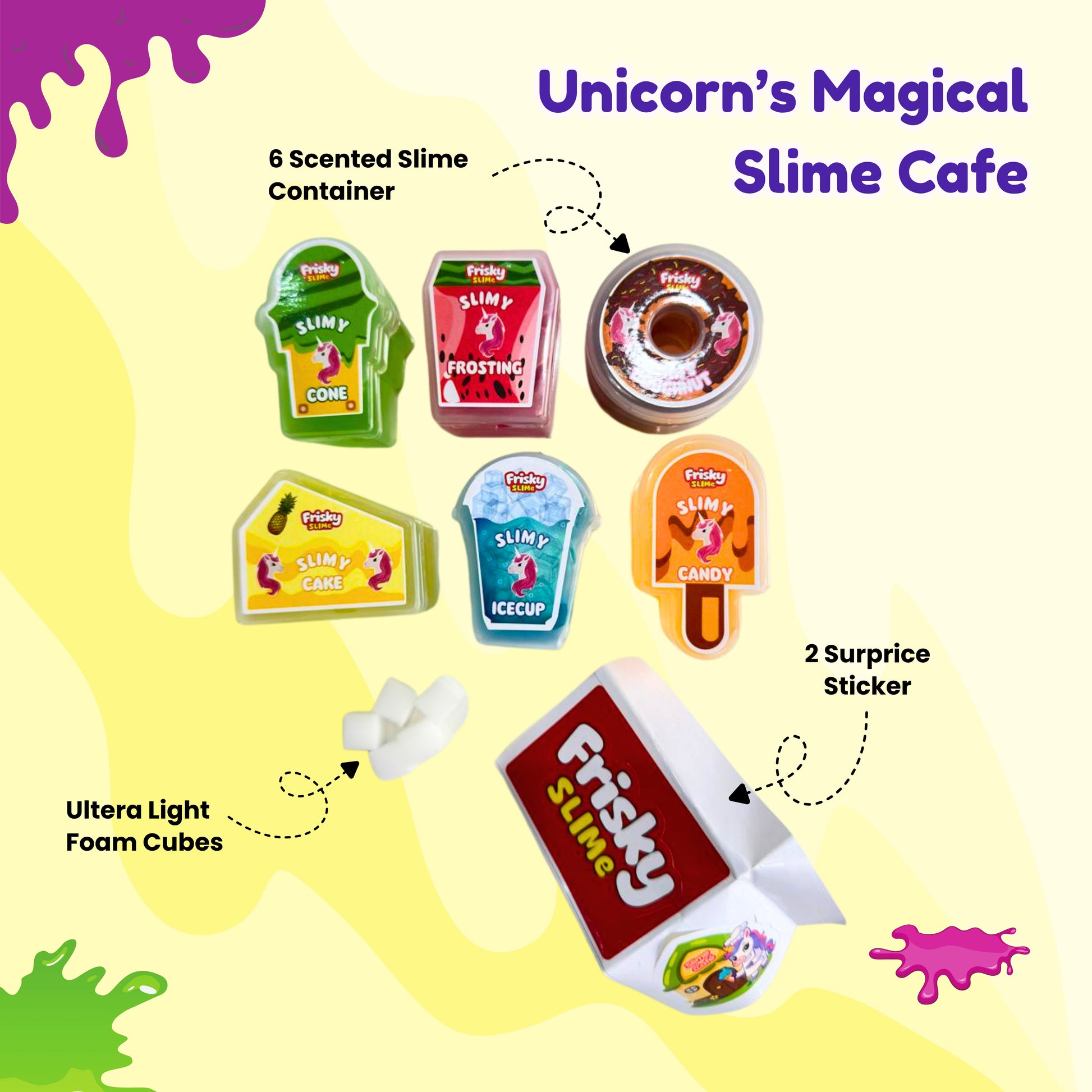 Step into the whimsical world of Unicorn’s Magical Slime Café, where creativity meets sweetness! This enchanting collection features six beautifully scented slimes, each inspired by a delicious dessert — Dough Nut, Cone, Frosting, Candy, Ice Cup, and Cake. Every pot captures the charm of café treats while turning playtime into a fun, sensory-rich experience.